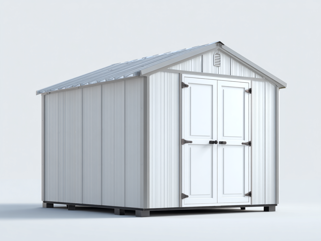 Abri de jardin en bois 300x240x230 cm - blanc et gris - structure extérieure avec toit double pente