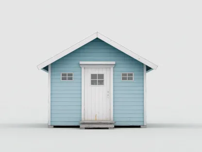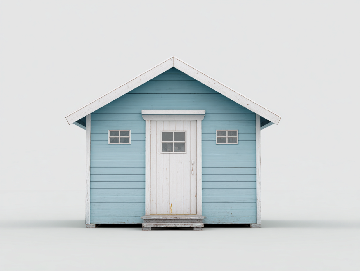 La structure est réalisée en bois avec une finition bleu clair associée à des éléments blancs, apportant un rendu lumineux et soigné. Les parois et la toiture sont conçues pour une utilisation extérieure régulière, avec une bonne stabilité générale.