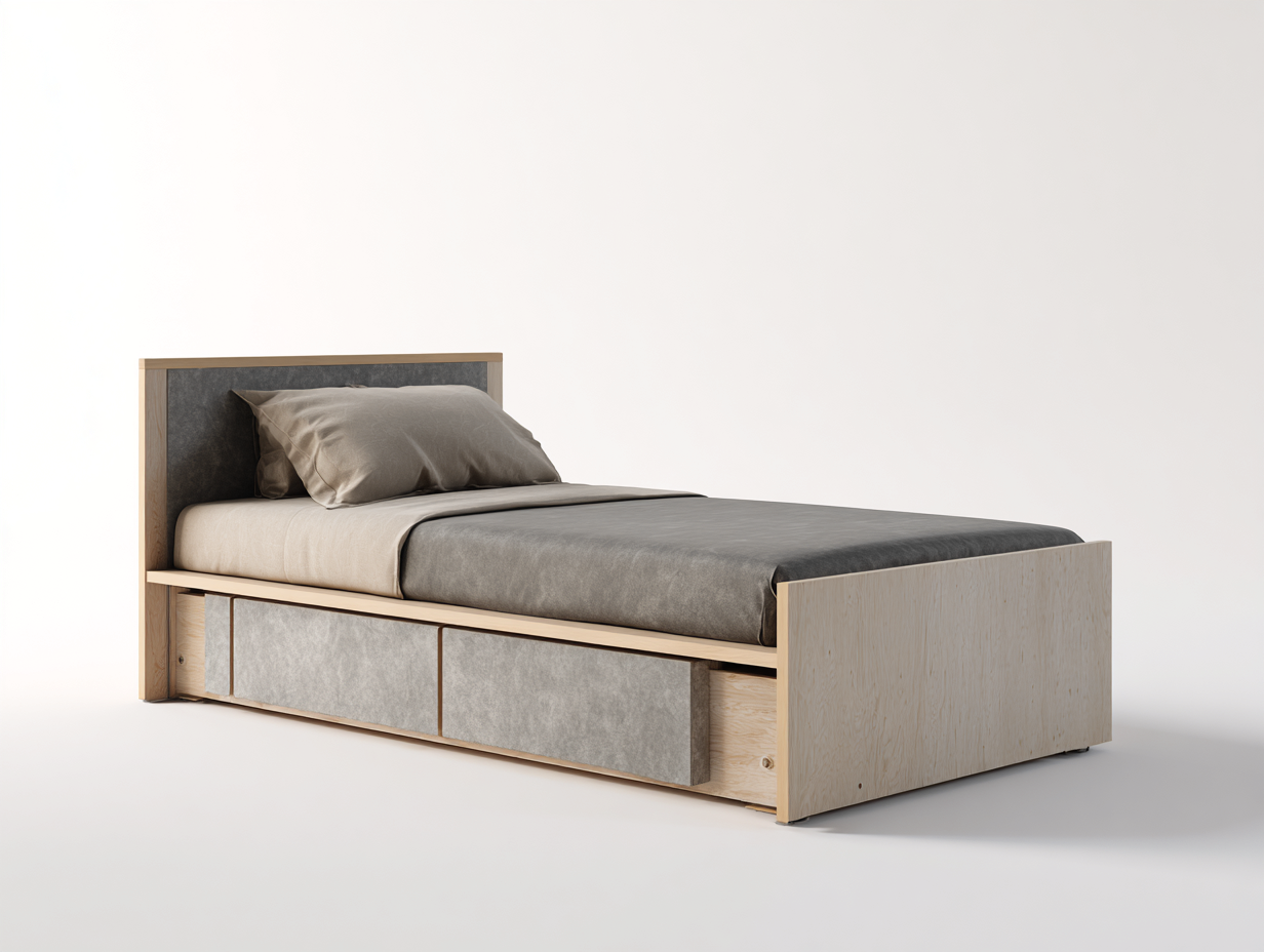 Ce lit simple est conçu pour une utilisation en chambre et convient parfaitement à une chambre d'enfant, d'adolescent ou à une chambre d'amis. Son design sobre et fonctionnel associe un cadre en bois clair à des éléments textiles gris pour une ambiance chaleureuse et équilibrée.